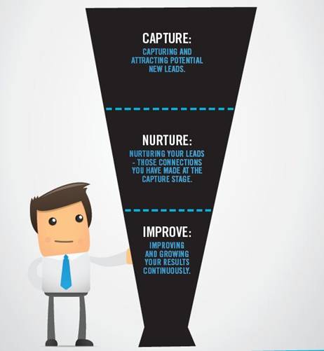 Capture: This stage is focused on capturing and attracting potential new leads. It involves applying advanced technology and social media to learn exactly where your potential customers are talking and what they are talking about—and to be aware of the conversations people are having about you, your competitors or your industry.